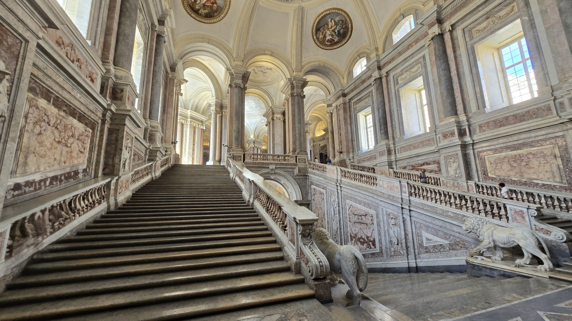Je to královský zámek asi 40 km od Neapole – Reggia di Caserta – a patří mezi největší a nejvelkolepější královské rezidence v Evropě. Když se řekne "italské Versailles", mluví se právě o něm. Zámek nechal v 18. století postavit Karel VII. z rodu Bourbonů a architekt Luigi Vanvitelli se opravdu "nešetřil".
