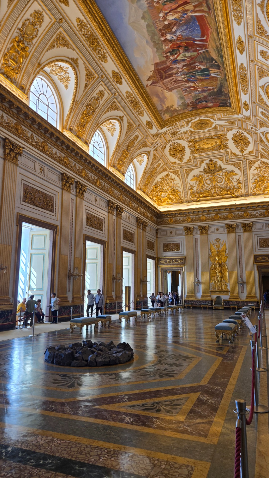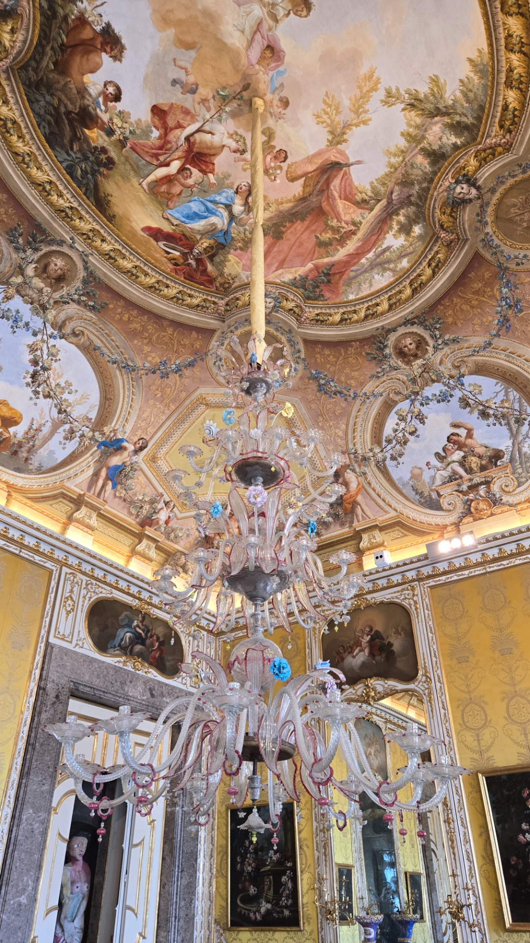 desítky honosných sálů, schodišť a salonků, nekonečné mramorové chodby, zlatem zdobené stropy, fresky, křišťálové lustry, reprezentační královské apartmány, kde máš pocit, že jen čekáš, až někdo řekne "Madame, dîner est servi." A pak vyjdeš ven – a zjistíš, že to nejlepší teprve začíná.