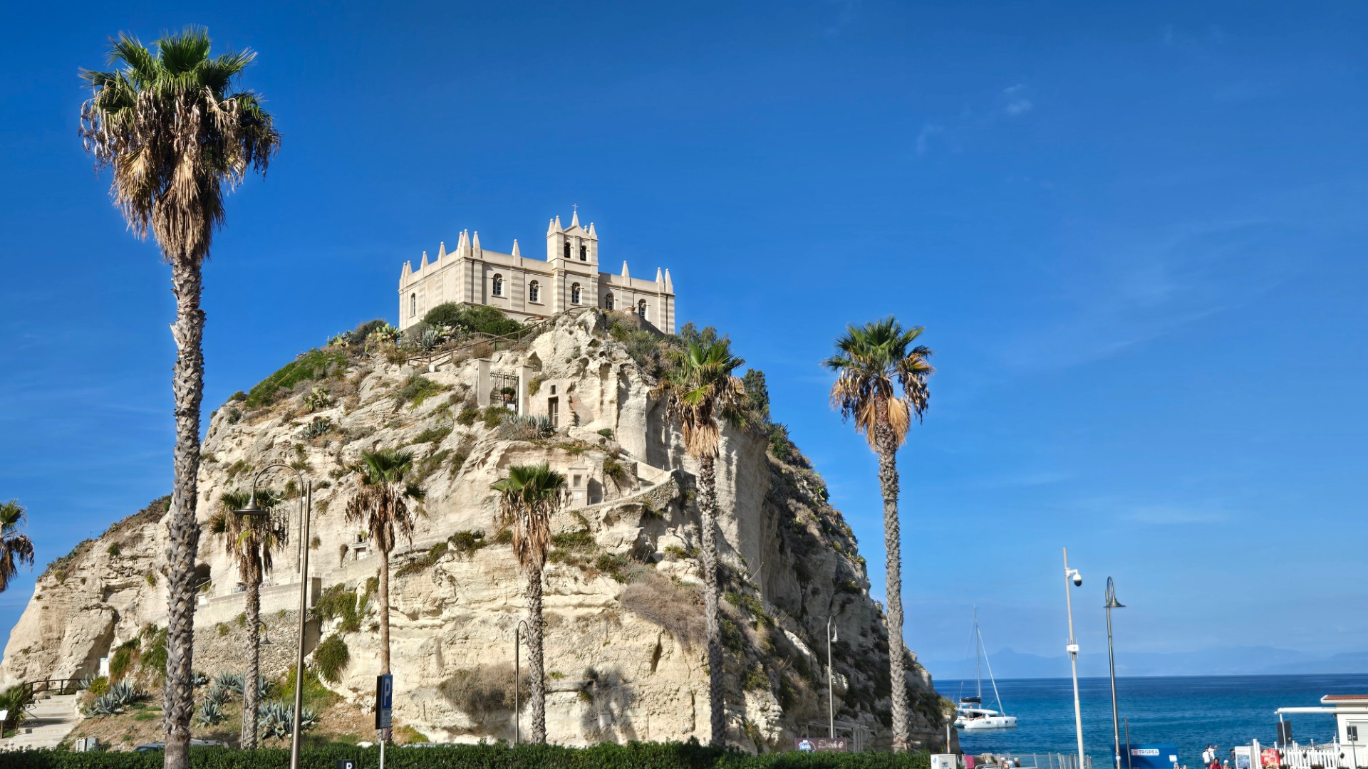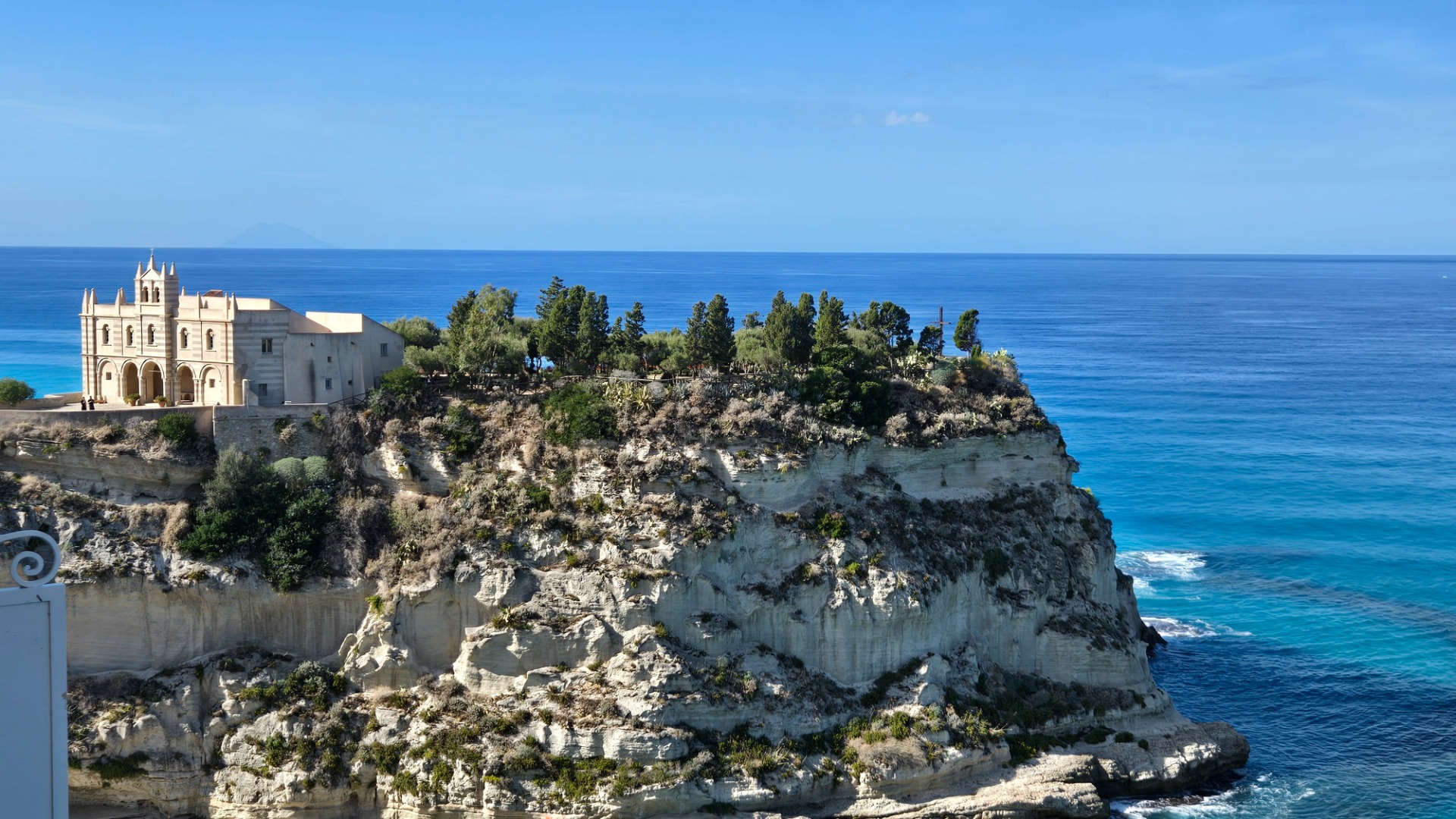 Tropea je asi nejznámější kalábrijské letovisko – taková vlajková loď místního cestovního ruchu. Městečko sedí na vysokém útesu, pod ním bílé pláže s tyrkysovou vodou a naproti ikonická skalka se svatyní Santa Maria dell'Isola, kterou znáš z většiny fotek Kalábrie. Staré centrum je plné úzkých uliček, malých náměstíček, restaurací, barů a obchodů se vším od sušených rajčat po nejslavnější kalábrijskou cibuli.